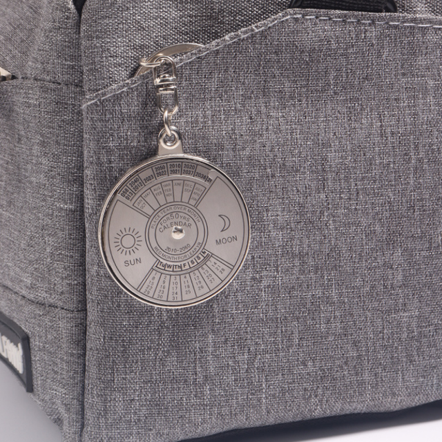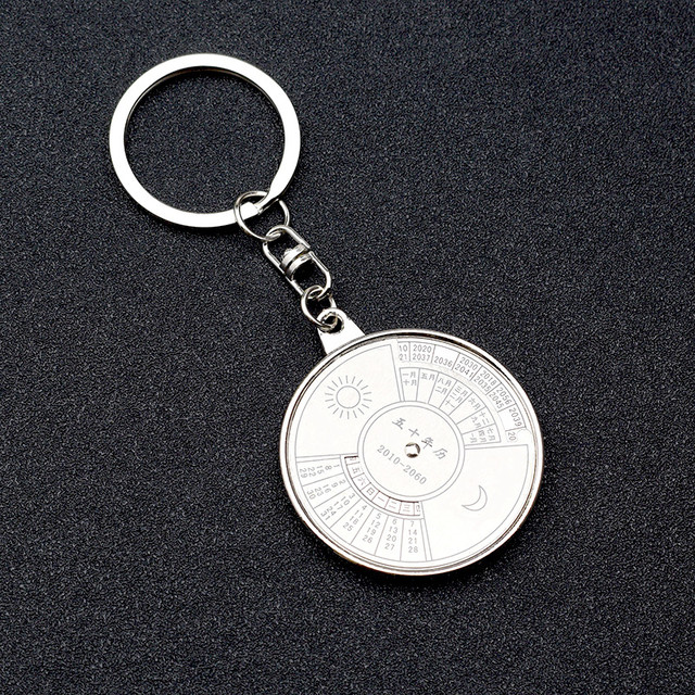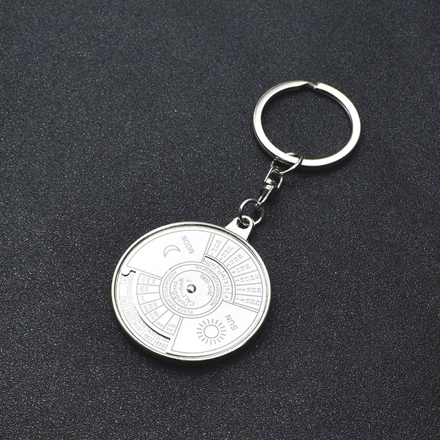 50 Years Perpetual Calendar Keychain Silver Alloy Keyring Key Decoration 8OU9 Car Keychain