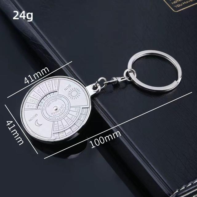 Брелок для ключів із вічним календарем Чудовий 50-річний календар, також чудовий брелок для ключів З дзеркальною поверхнею на зворотному боці Маленька штовхальна ручка на брелоці для повороту Чудово підходить для себе або як подарунок Матеріал: цинковий сплав Колір: сріблястий, як показано на малюнку.