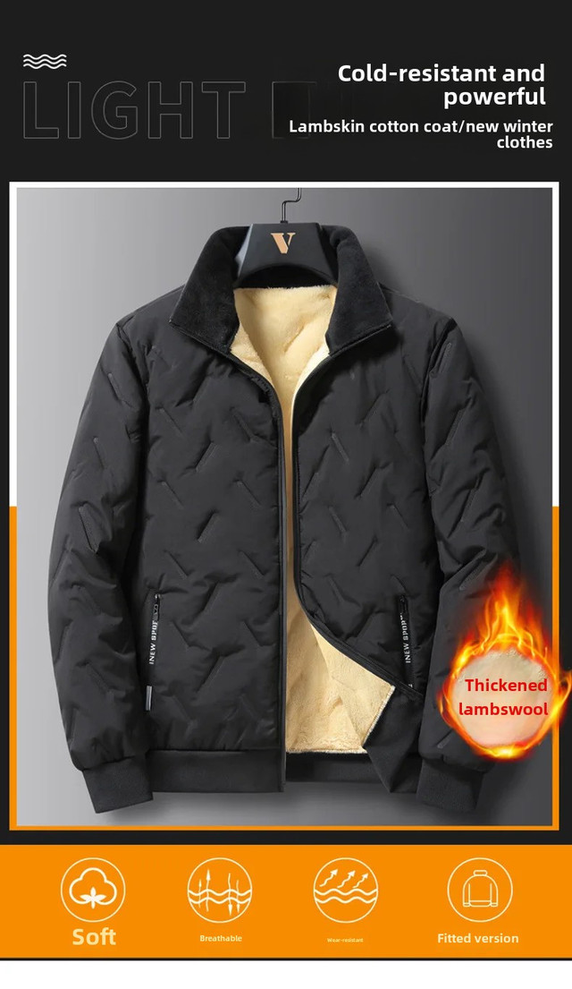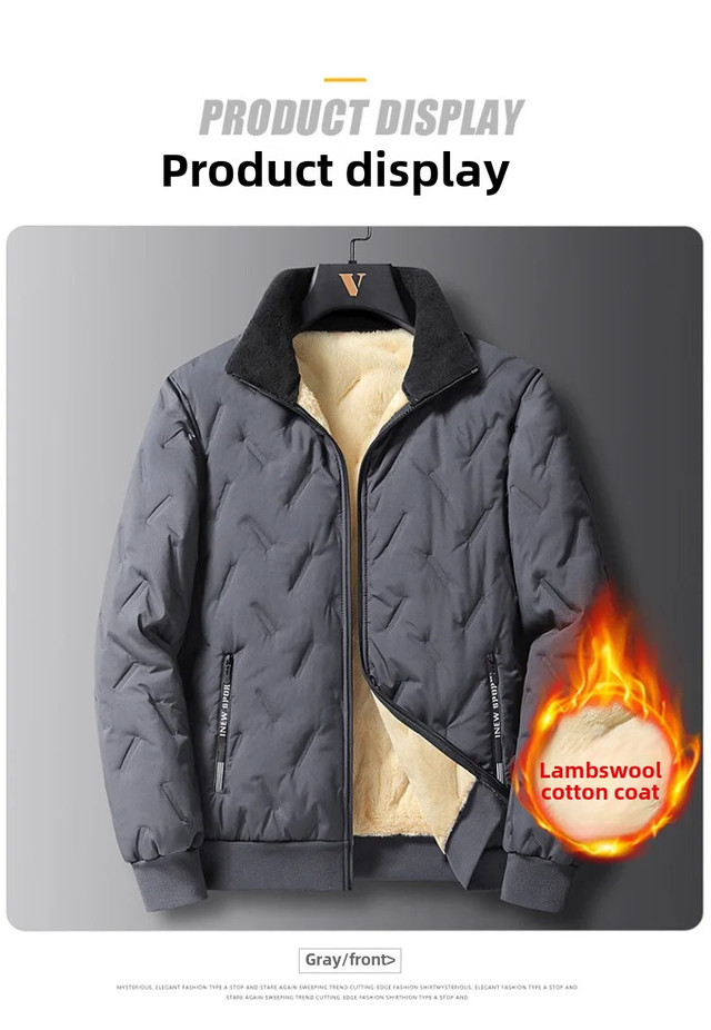 Men's Winter Thickened Fleece-lined Cotton Coat Windproof Padded Jacket For Middle-aged Elderly People Loose Fit Parka