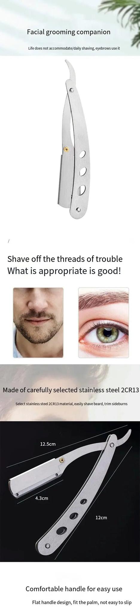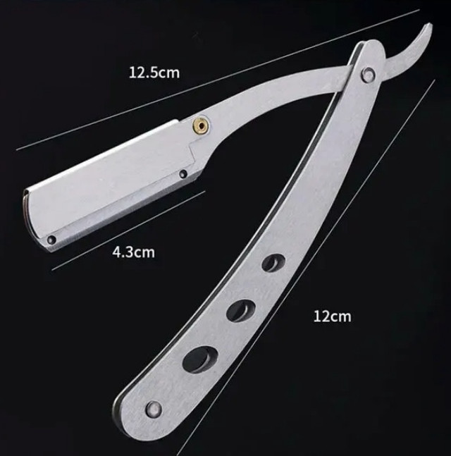 • Ручний інструмент для догляду за обличчям: Ця складана бритва для волосся являє собою ручний інструмент для догляду за обличчям, що ідеально підходить для гоління та перукарських послуг. Він створений для чоловіків, які цінують традиційне гоління.
