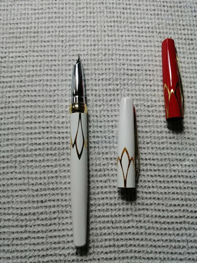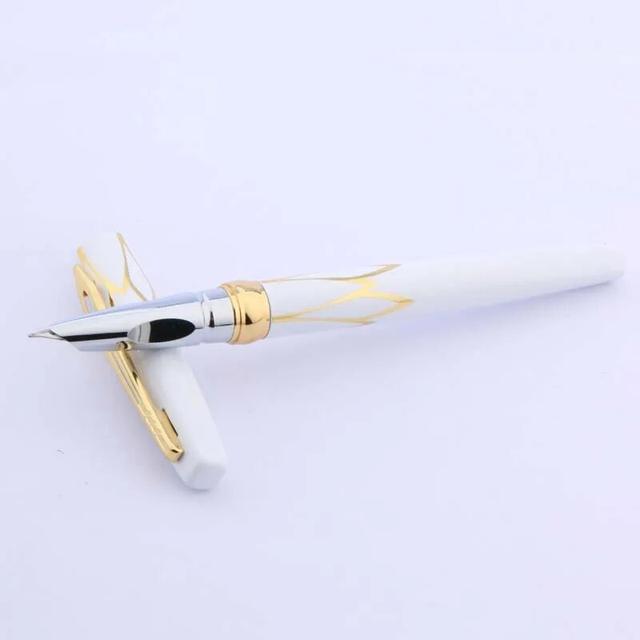 Перова чорнильна ручка "Hero Luxury", закрите перо "Genius Iridium", метал, позолота, розпис, біла + капсула чорнила в подарунок