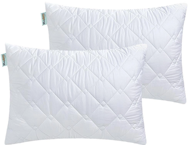 Наша подушка — розробка українського виробника текстилю для німецького бренда. Виготовлена з м'якої, приємної на дотик, білосніжної тканини. Наша подушка — виріб середньої жорсткості. Виготовлена із сучасних матеріалів, що мають низку переваг проти натуральних аналогів. Ця подушка: ● не вбирає запахи та вологу; ● не викликає алергічних реакцій; ● має антибактеріальний ефект; ● придатна для прання в машинці-автоматі; ● швидко сохне після прання в природних умовах; ● довго зберігає свої естетичні та функціональні властивості. Наша подушка приємна на вигляд і на дотик. Гарантує природну циркуляцію повітря. Як наповнювач використовується силіконізоване поліефірне волокно. Воно чудово тримає форму. Забезпечує подушці необхідне співвідношення м'якості та пружності. Не вбирає піт і бруд. Наші подушки — оптимальне рішення не тільки для сну, але й як прикраса спальної кімнати. Їхній колір і дизайн впишуться в будь-який інтер'єр. Стьобана тканина верху додасть індивідуальності ліжку. Створить враження ручної роботи та персонального підходу до оформлення кожного спального місця. Переваги Естетика та комфорт. Наші подушки — забезпечать комфорт нічного сну. Прикрасять спальну кімнату, виготовлену в різних стилях. Не вимагають особливих зусиль для підтримки в первісному вигляді. Здатні підлаштовуватися під індивідуальні звички того, хто спить. Якість та доступність. Наша подушка — розробка українського виробника домашнього текстилю, виготовлена на замовлення відомого німецького бренда. Вона виготовляється на сучасному обладнанні з якісних аналогів натуральних тканин і наповнювачів. Оптимально поєднує європейську якість з українською ціною. Безпека та корисність для здоров'я. Якість і безпека виробу підтверджені сертифікатом європейського рівня — OEKO-TEX® STANDARD 100. Ця подушка виготовлена з матеріалів, не здатних бути причиною алергічних реакцій або середовищем хвороботворних мікроорганізмів. Вона якісно прошита та забезпечує максимально природне положення голови та шиї людини, що спить. Характеристики Розмір