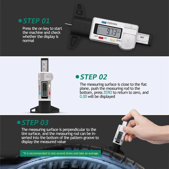 • Сумісність із більшістю розмірів шин. Цифровий вимірювач глибини протектора сумісний із широким діапазоном розмірів шин, що робить його універсальним інструментом для будь-якого власника автомобіля.
